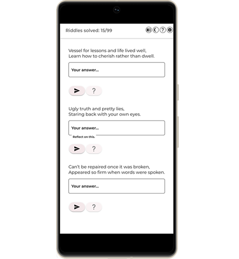 A Wordle-like game of riddles. The players are invited to come back each day for three new riddles to learn a secret when they solve the total of 99.